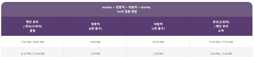 ✔️ 인스파이어 아레나 셔틀 서울 명동역/대림역에서 출발하는 셔틀은 각각 8번 출구와 5번 출구에서 탑승 가능합니다.