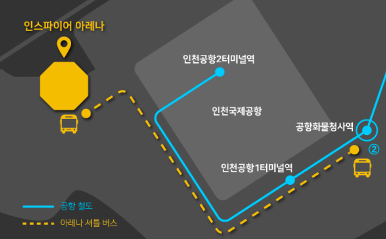 ✔️ 인천국제공항의 제1터미널과 제2터미널에서 각각 출발하는 셔틀버스는 공연 당일 많은 인원이 몰리더라도 수월하게 인스파이어 아레나로 이동할 수 있게 도와줍니다.