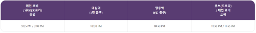 * 공연 시작 3시간 전 ~ 공연 종료 1시간 30분 후까지 운행합니다.