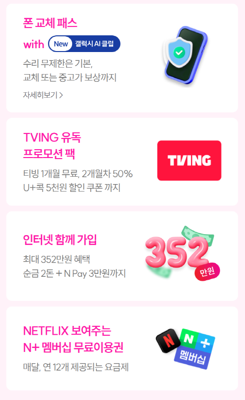 - 유플러스닷컴 사전예약 고객에게 최대 20만 원 상당의 쿠폰 제공