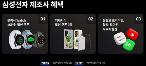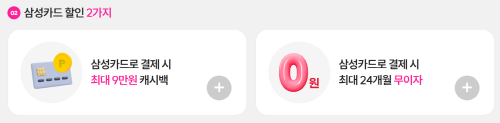 - 삼성카드 결제 시 최대 24개월 무이자 및 9만 원 캐시백 혜택