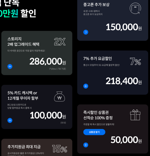 KT는 울트라 1TB 모델 할인(28.6만원)과 요금제 할인(7%, 최대 24개월)을 준비했으며, LG유플러스는 최대 20만원 상당의 쿠폰과 함께 폰교체패스 프로그램을 통해 2년 후 출고가의 40%를 보상해주는 혜택을 제공합니다.