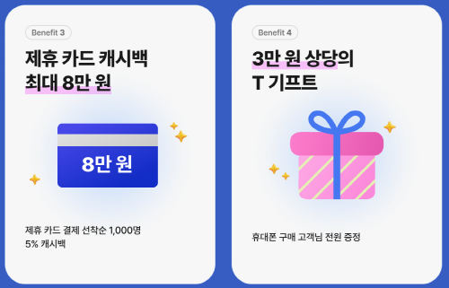 - BC, 삼성, 신한카드 이용 시 최대 10만 원 한도 5% 캐시백 또는 12개월 무이자 할부