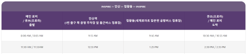 각 터미널에서 출발하는 셔틀버스의 시간표는 공연 일정에 따라 유동적으로 운영되며 아래에서 해당 시간표를 미리 확인해 보시길 권해드립니다.