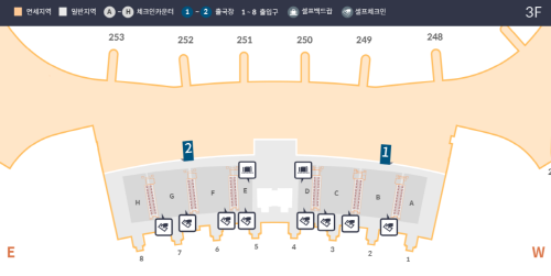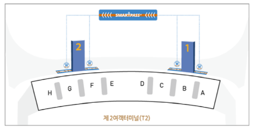 T2 (제2여객터미널): 스마트패스 통과가 가능한 게이트는 1, 2 출국장에 위치해 있습니다.
