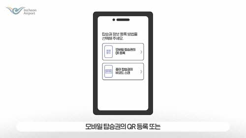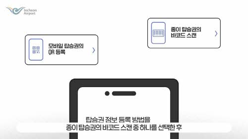 모바일 탑승권의 QR 등록 또는 종이 탑승권의 바코드 스캔 중 하나를 선택합니다.