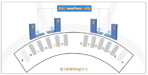 T1 (제1여객터미널): 스마트패스 통과가 가능한 게이트는 2, 3, 4 출국장에 위치해 있습니다.
