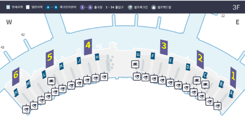 24시간 운영 게이트: 새벽 비행기를 탑승하는 경우, 24시간 운영하는 3번 게이트를 이용하면 됩니다.