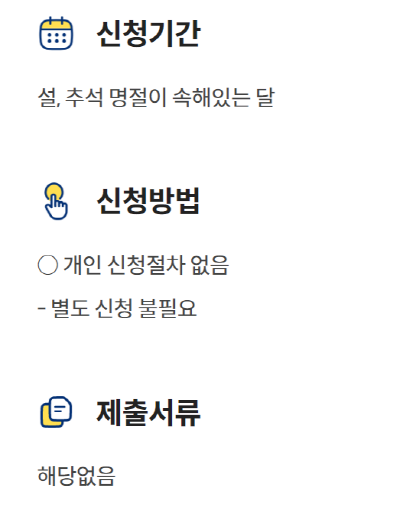 ☑️ 중복 수령 불가: 동일한 명목의 지원금을 중복해서 받을 수 없습니다. 기존에 명절 지원금을 받은 적이 있다면, 중복 수령이 가능한지 꼭 확인하세요.