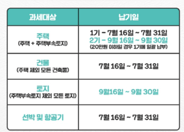 ✅ 9월 납부: 9월에는 주택 재산세의 나머지 절반인 토지분이 부과됩니다.